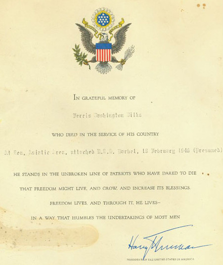 Christine has taken a keen interest in the Barbel family. A while back, she came across a personally-signed note from President Harry Truman to the family of Barbel crew member, Ferris Washington Wilks, for sale on ebay. She secured the item for future generations to enjoy. Many thanks Christine.