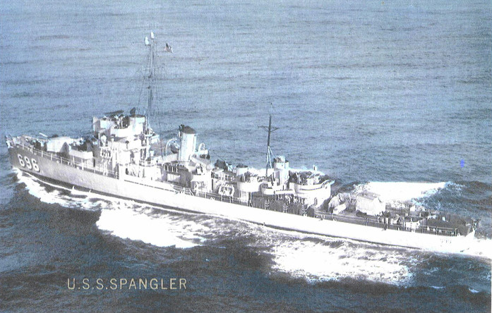 The USS Spangler, launched in July 1943, was named after Lt. Donald Hayes Spangler, who went down with his ship, the USS Atlanta, at the naval battle of Guadalcanal. The Spangler and her crew served throughout the Pacific during World War II.