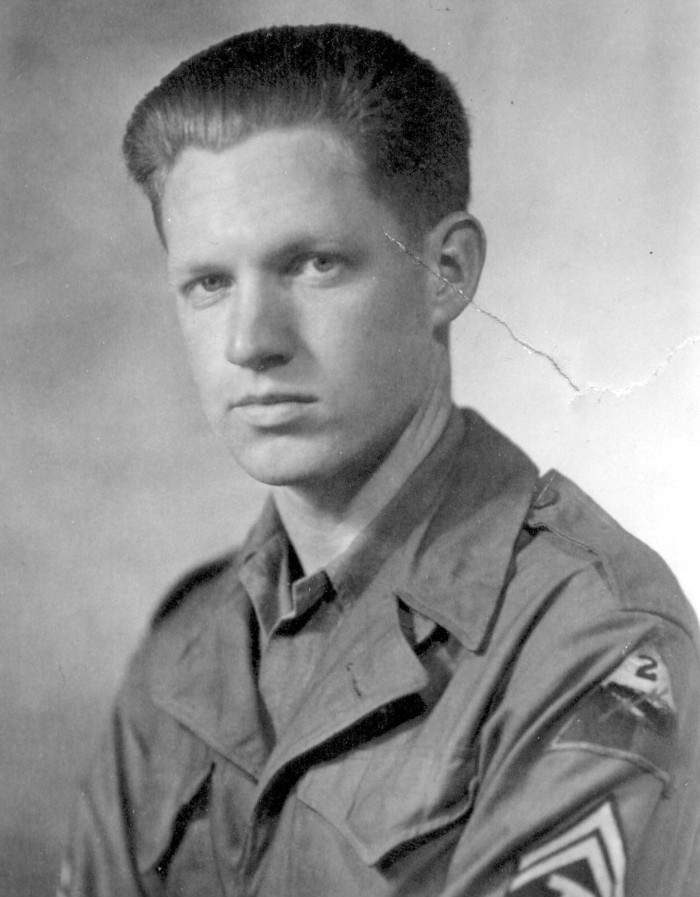 Infantryman Tom Franks, who served with the 121st Infantry, 8th Infantry Division in Northern Europe, was wounded twice, including a bullet through the neck at Brest, France.  Yet, he survived and returned to the front each time.    “Towards the end, the fighting got a lot lighter,” Franks said, agreeing with Persons’ assessment.  “In fact, as we got closer to Berlin, we would get hundreds, if not thousands of German soldiers running at us with white flags.  They were so desperate not to be captured by the Russians that they were literally running to find and surrender to Americans.”