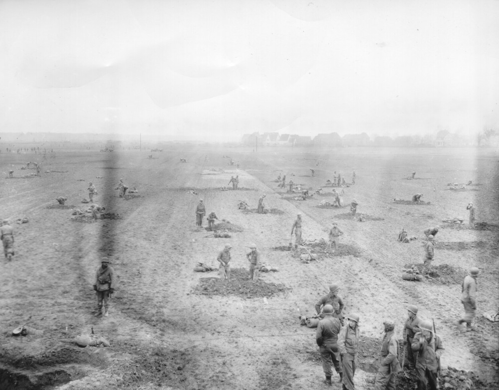 90th Infantry Division soldiers dig foxholes outside of Elsdorf, Germany - February 1945. (U.S. Army Signal Corps Photo, Courtesy National Archives)