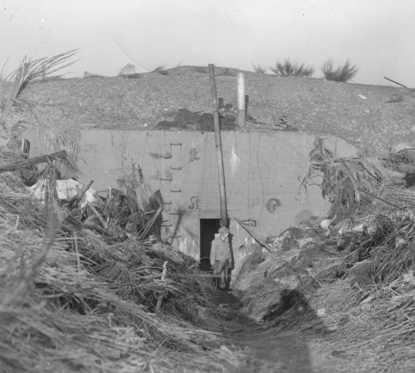 A member of the 90th Infantry Division anti-tank unit stands outside a secured German pillbox along the Siegfried Line near Habscheid, Germany - February 1945. (U.S. Army Signal Corps Photo, Courtesy National Archives)