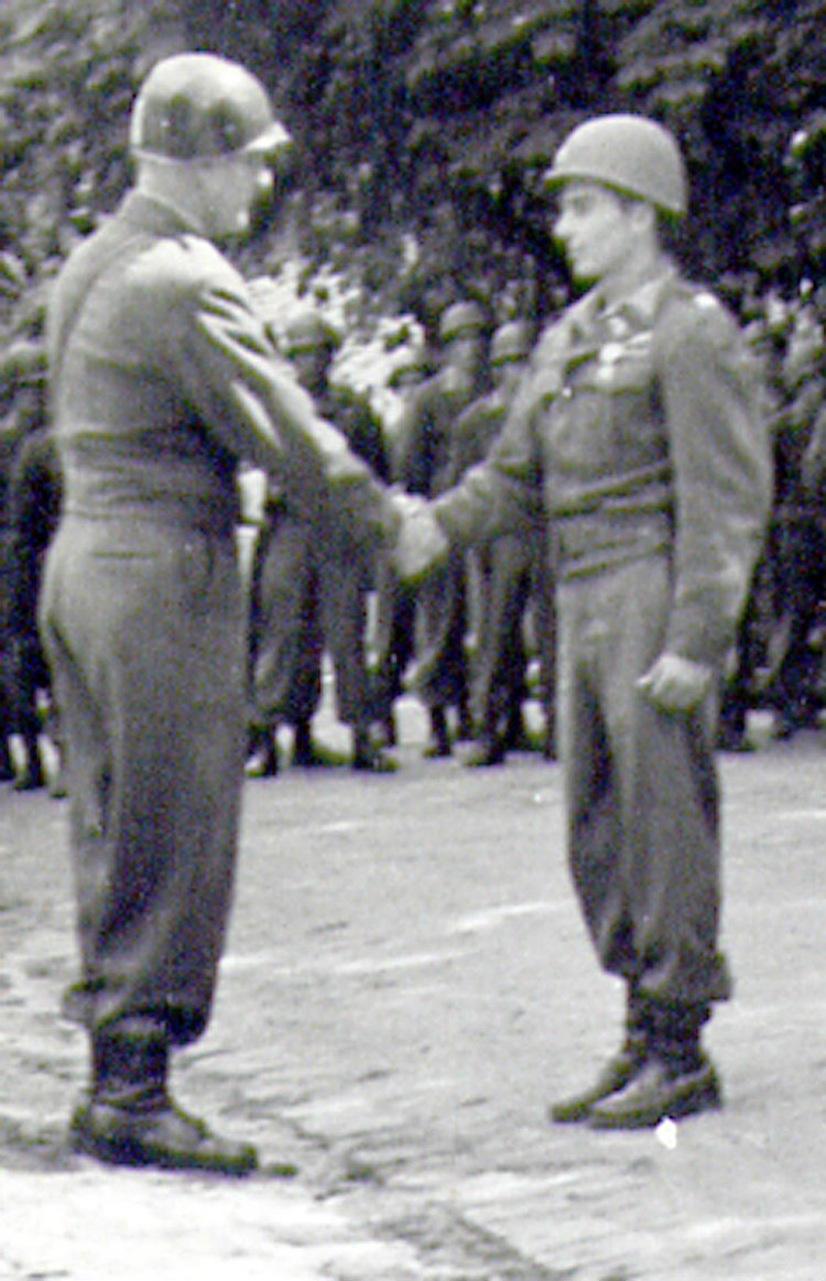 “Multiple German tanks stormed Lieutenant Mateyko’s section of the line. At such close range, the enemy machine guns shredded his ranks, while their 88 cannon shells simply cut soldiers in two. In the face of the onslaught, Mateyko attempted to steady his group, but they soon faltered. As GIs raced for the rear, he bravely held his ground. He grabbed a discarded bazooka and dropped to a prone position. While under extremely heavy fire, he disabled three opposing tanks, one right after the other. Inspired by their leader’s courage, his men rallied. Together they squelched what remained of the enemy surge.
