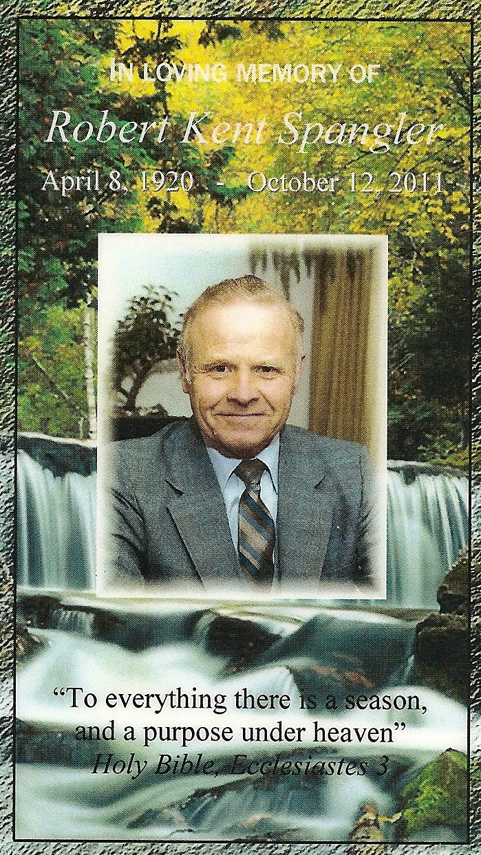 “Robert Kent Spangler, age 91, peacefully passed away in his home in Waikoloa, HI on October 12, 2011, previously of Baltimore, MD.
